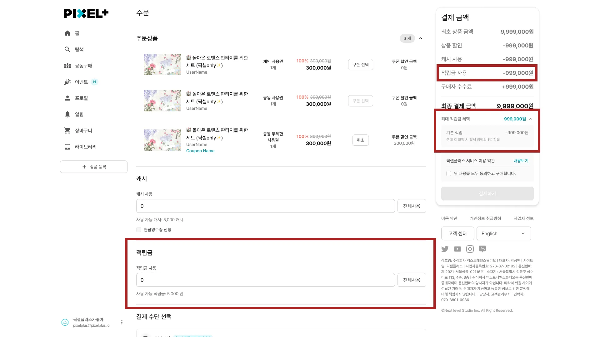 1Point is equivalent to one 1KRW in cash and can be used for payment within the Pixelplus Service (use may be restricted by certain items or amounts).
