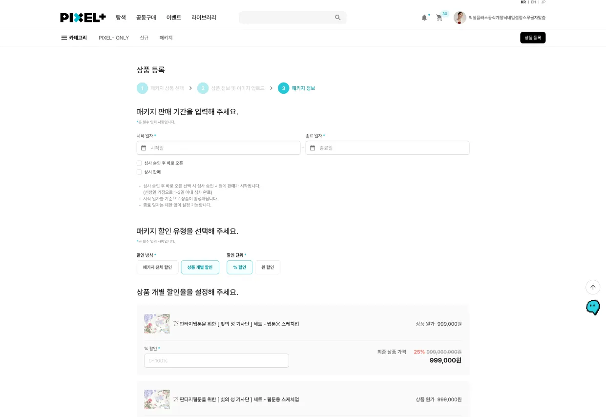 패키지 판매 기간 및 할인 정보를 작성해주세요.
