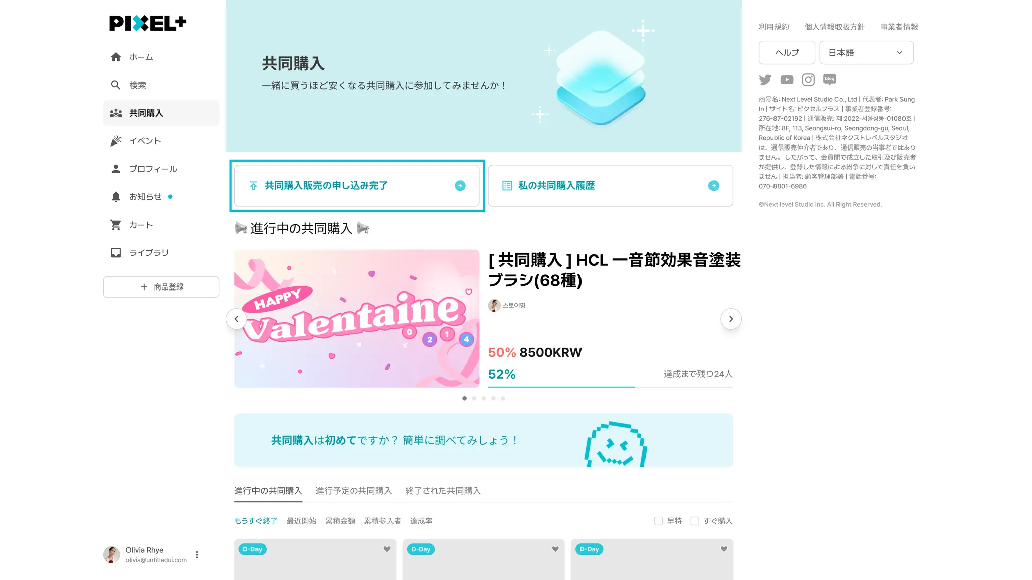 進行中の共同購入/進行予定の共同購入をご確認ください。