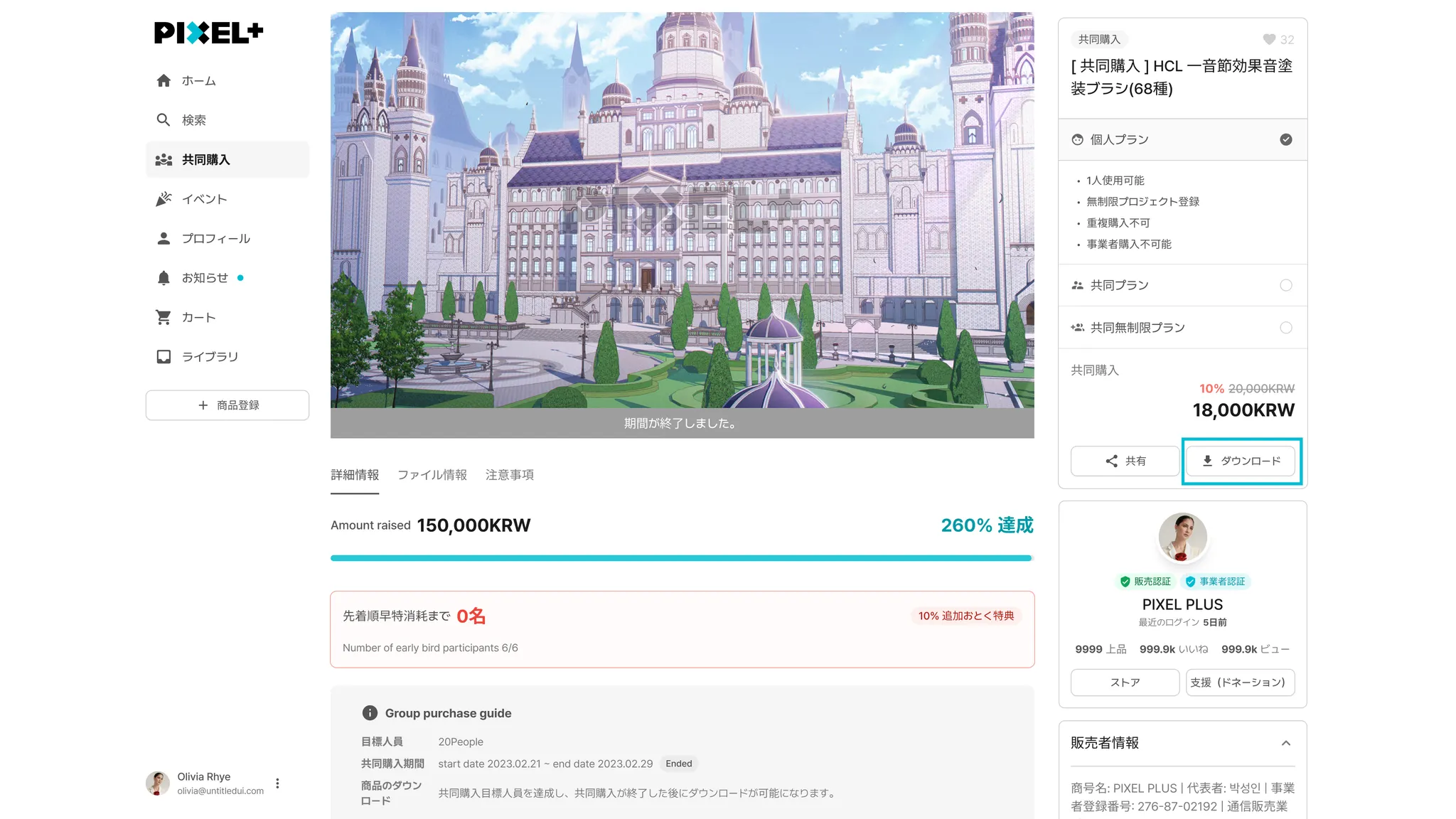 共同購入が目標達成後に終了すると、その商品の商品詳細ページからダウンロードできます。