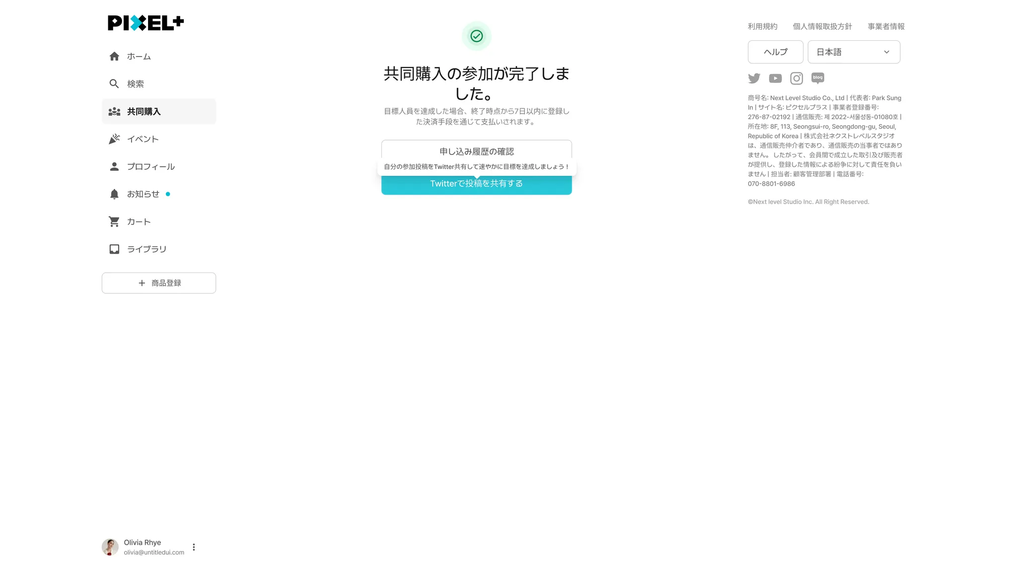 ピクセルペイで決済予約の場合、共同購入終了後7日以内に該当カード会社に自動決済されます。