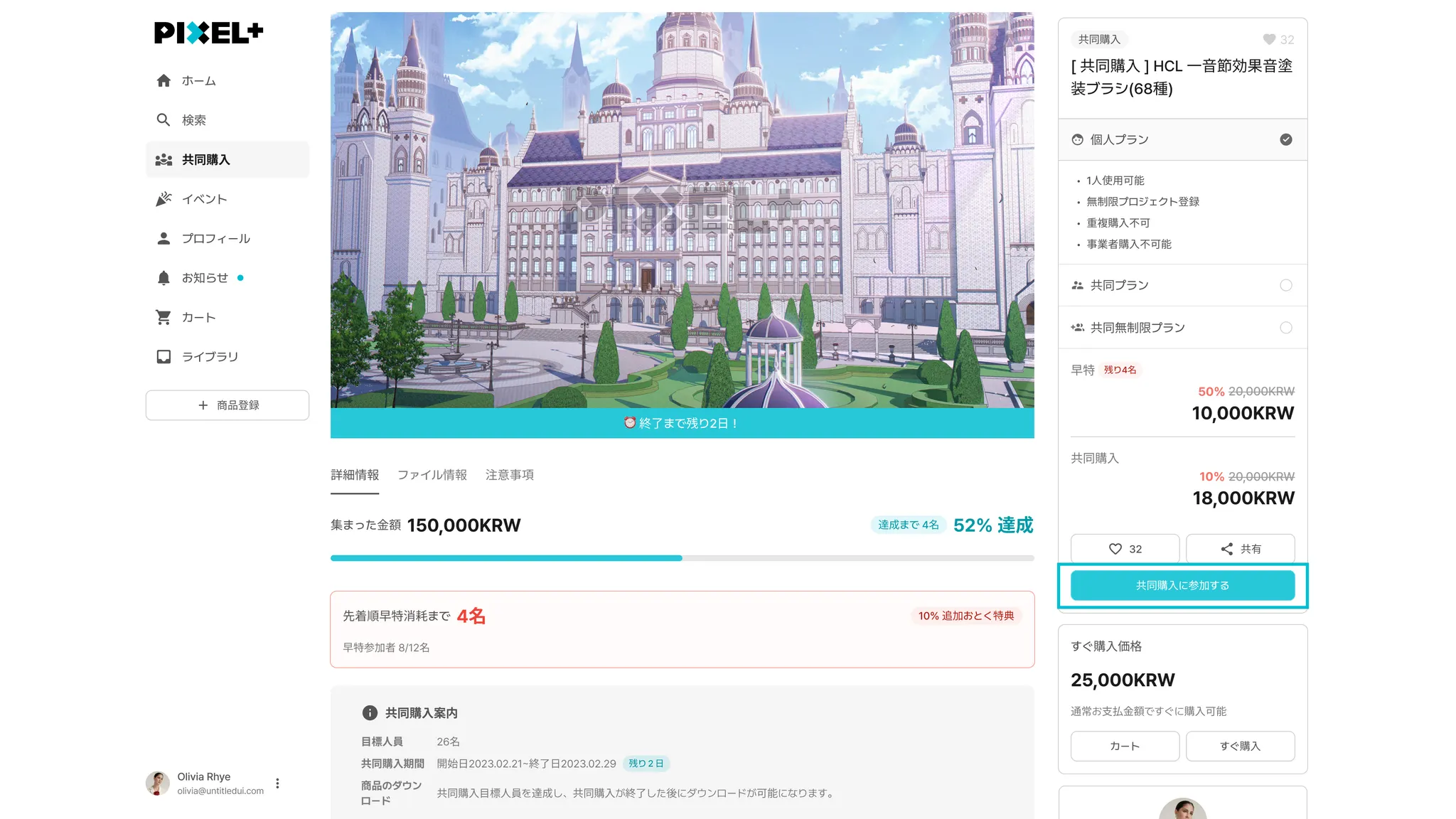購入するライセンスを選択して「共同購入に参加する」ボタンを押してください。