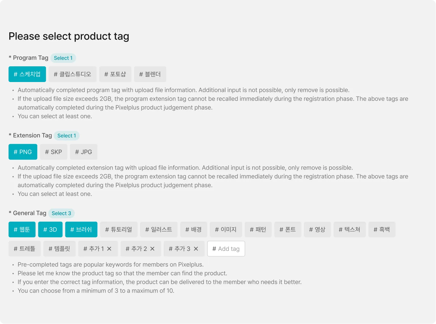 Please select other regular tags including programs and extensions.