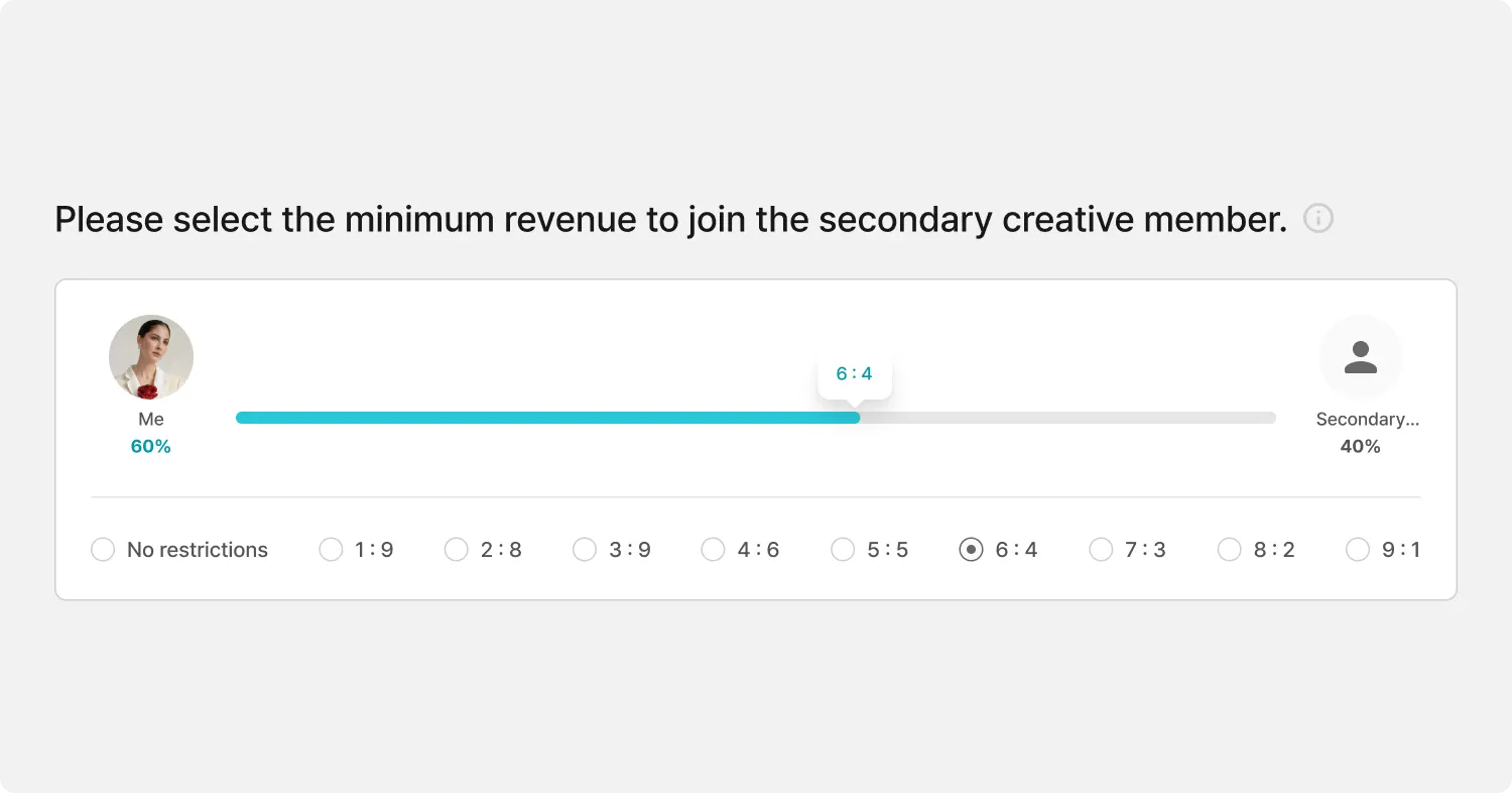 If secondary creation is allowed, please set the minimum profit to be shared with secondary creative members.