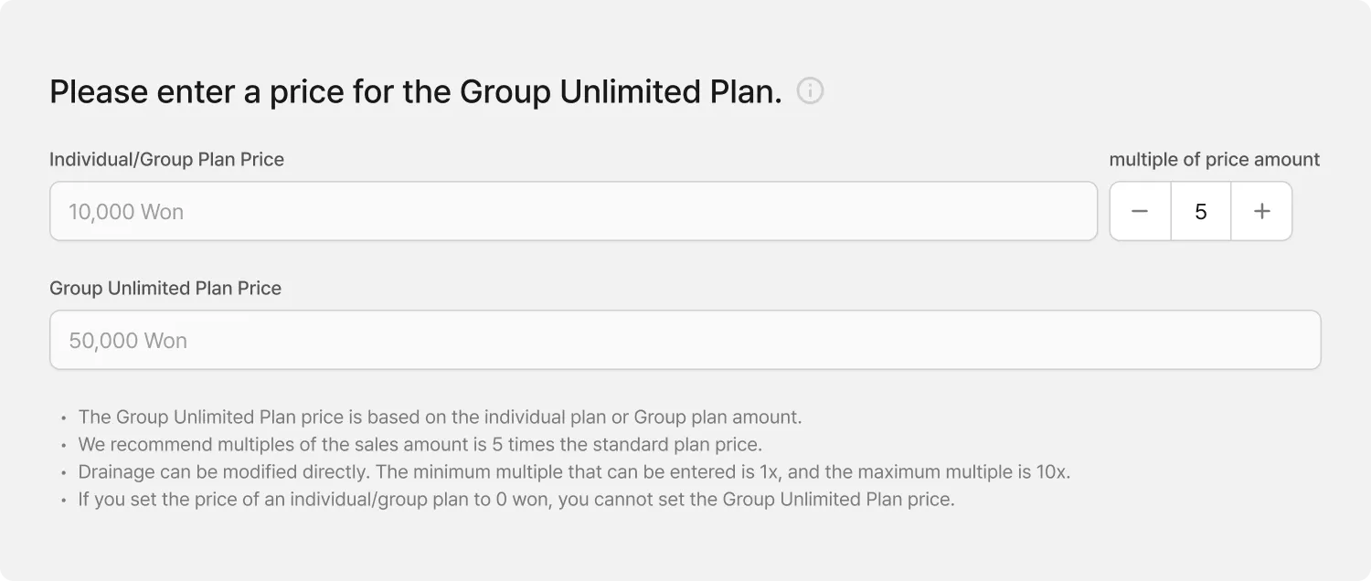 If you enter a personal/group plan price (base price), the default price is 5x.