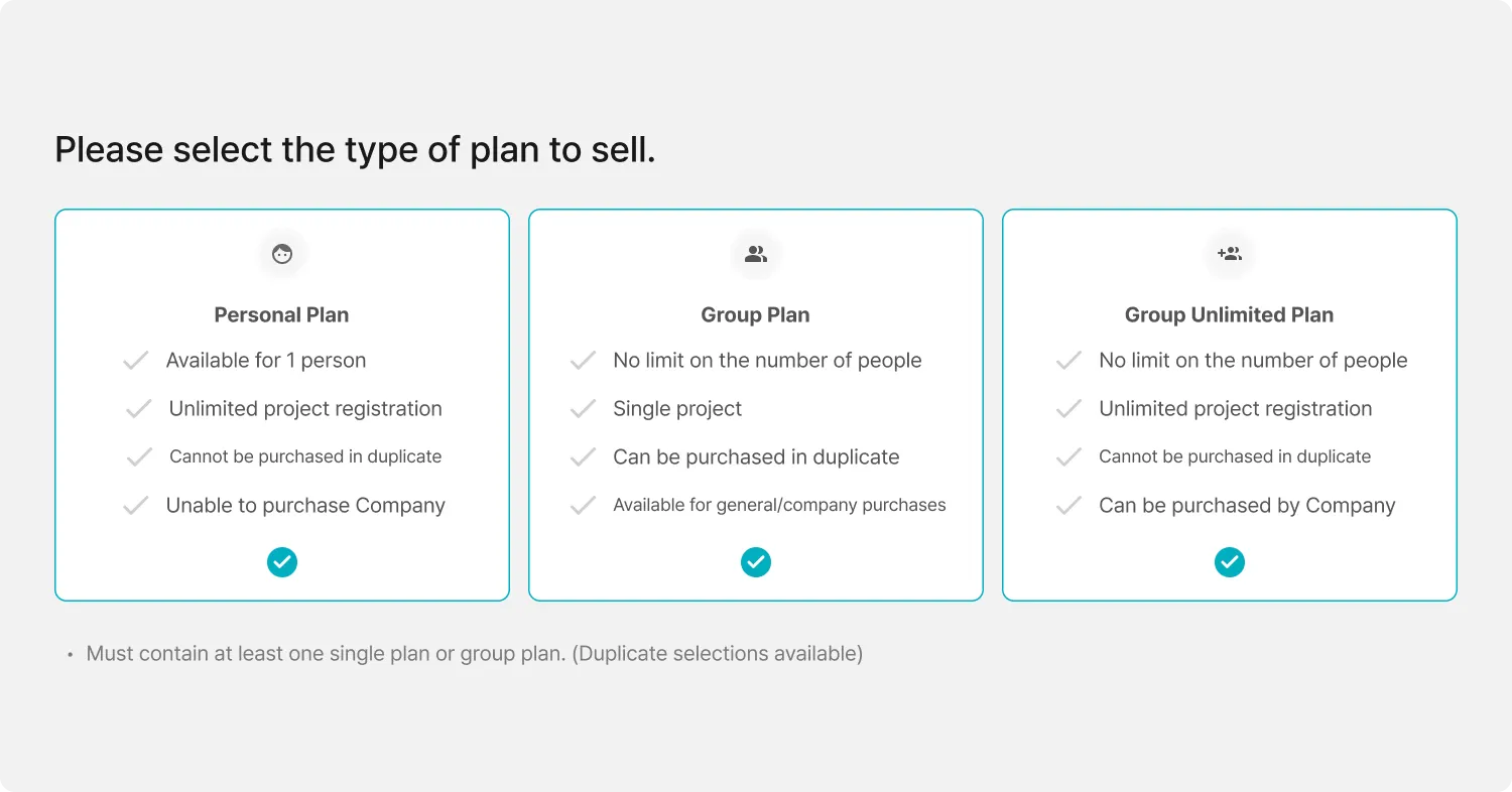 Please select the type of plan you want to sell.