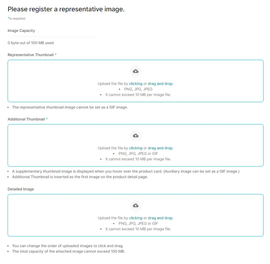 The first registered image becomes a product thumbnail. Images that will be registered after that will be included in the detailed image of the product one after another!