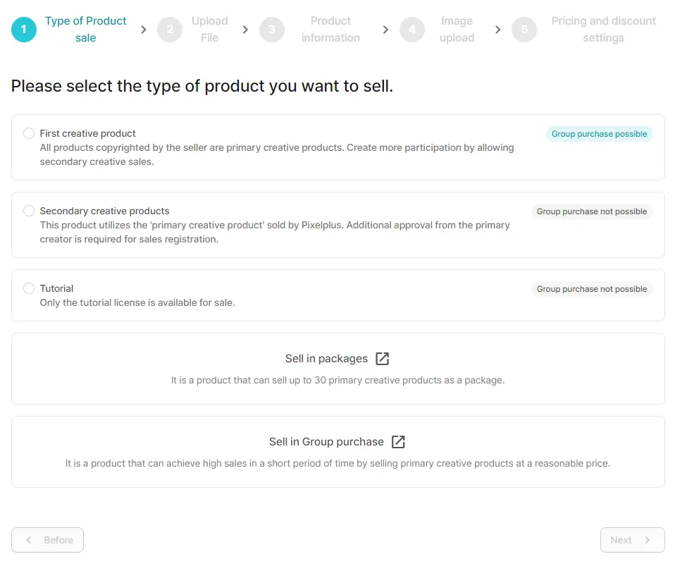 When registering the first creative product, you can choose whether to allow the sale of the secondary creative product!