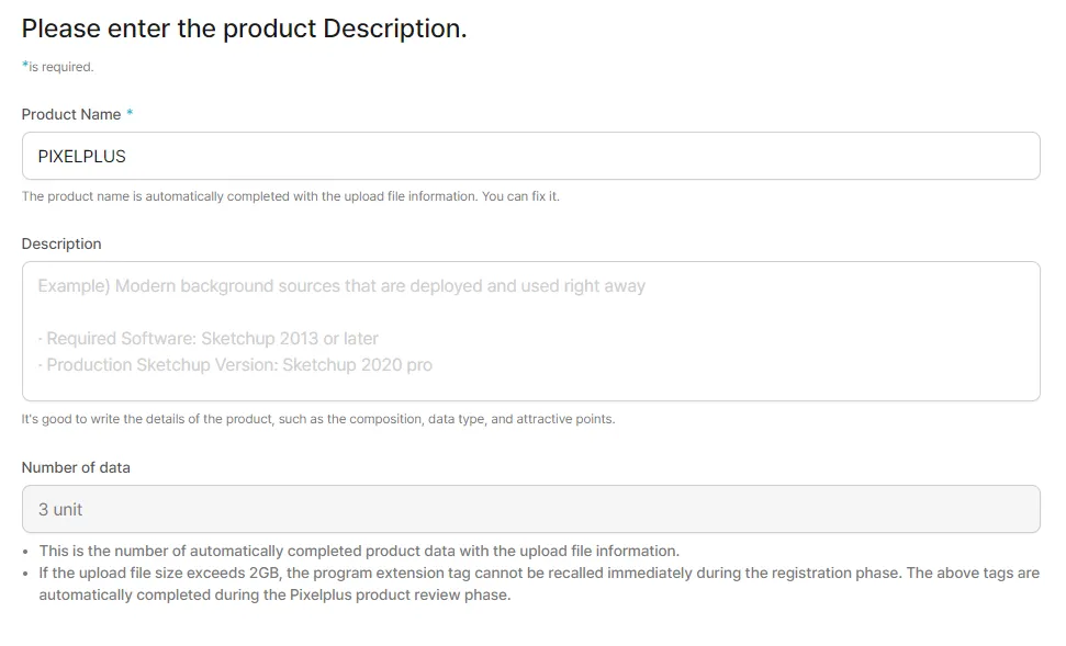 Please put the name of the product. (It automatically completes with uploaded file information but can be modified!)