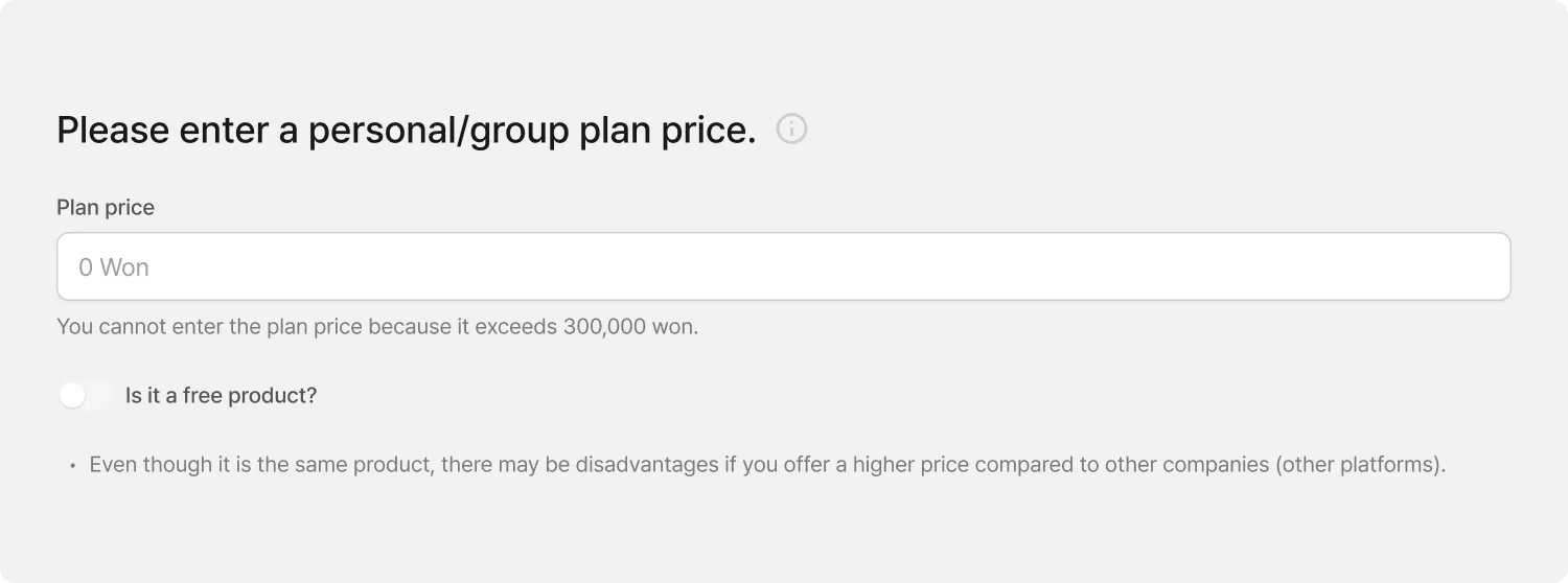 Please enter the price of the product you want. The maximum price is 300,000 won.