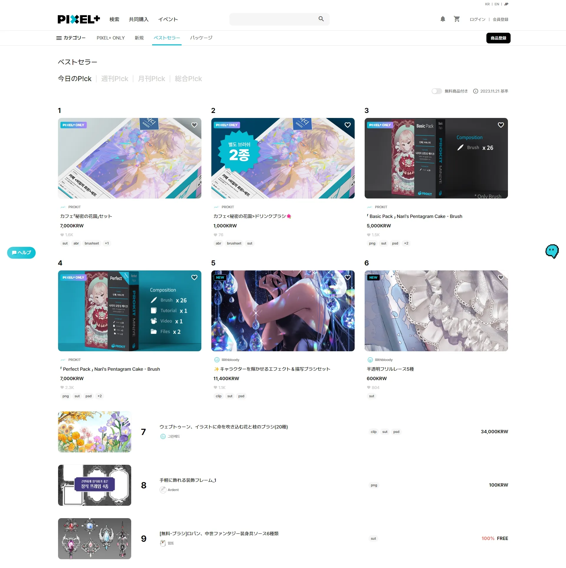 ピクセルプラスのベストセラー素材を確認できるページが開設されました。