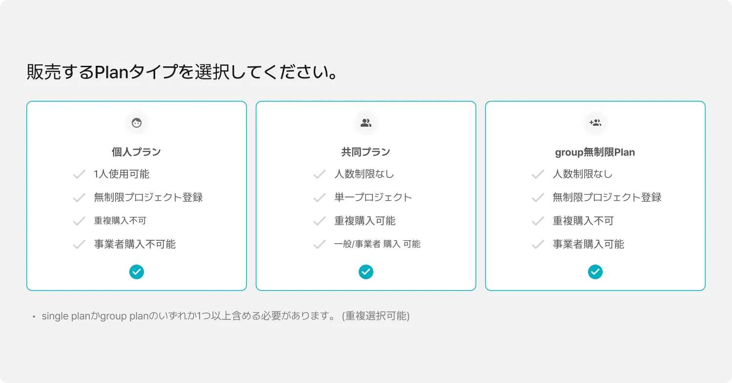 個人プランまたは共同プランのみ販売したり、両方のプランを販売することはできません。