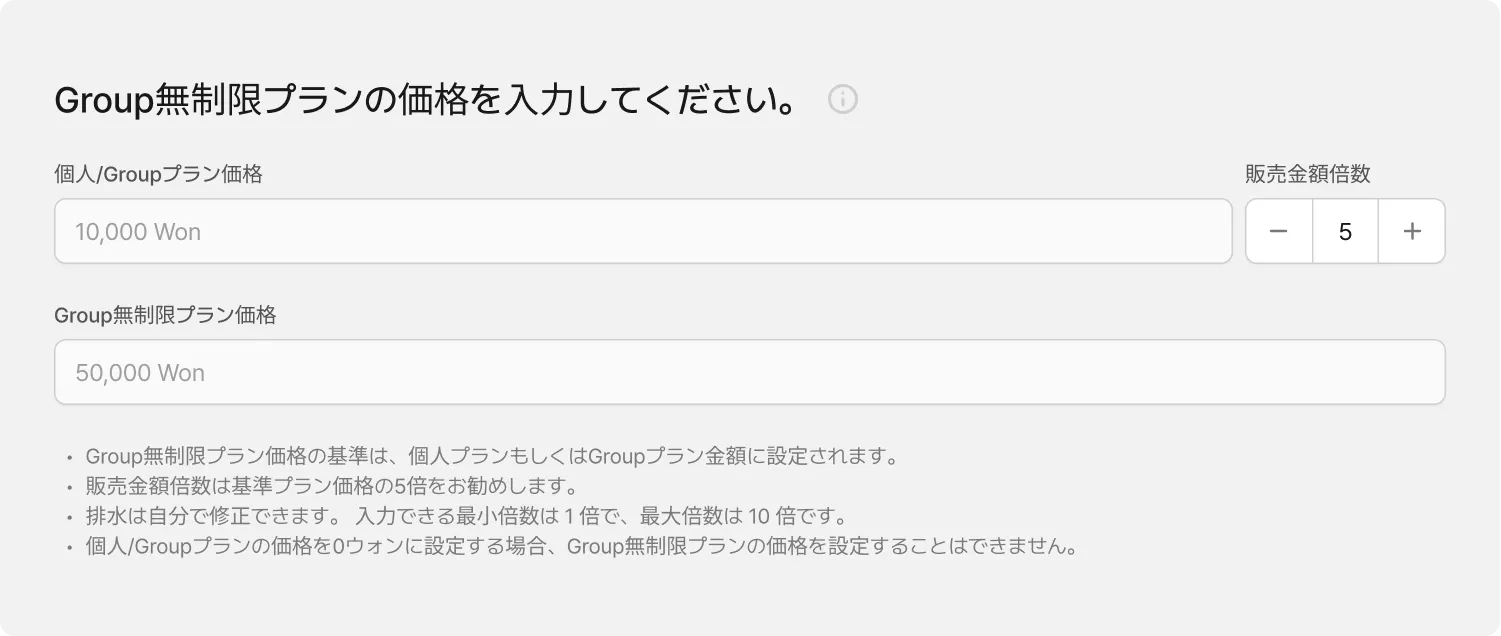 個人/共同プラン価格(基準価格)を入力すると、基本的に5倍の価格が設定されています。