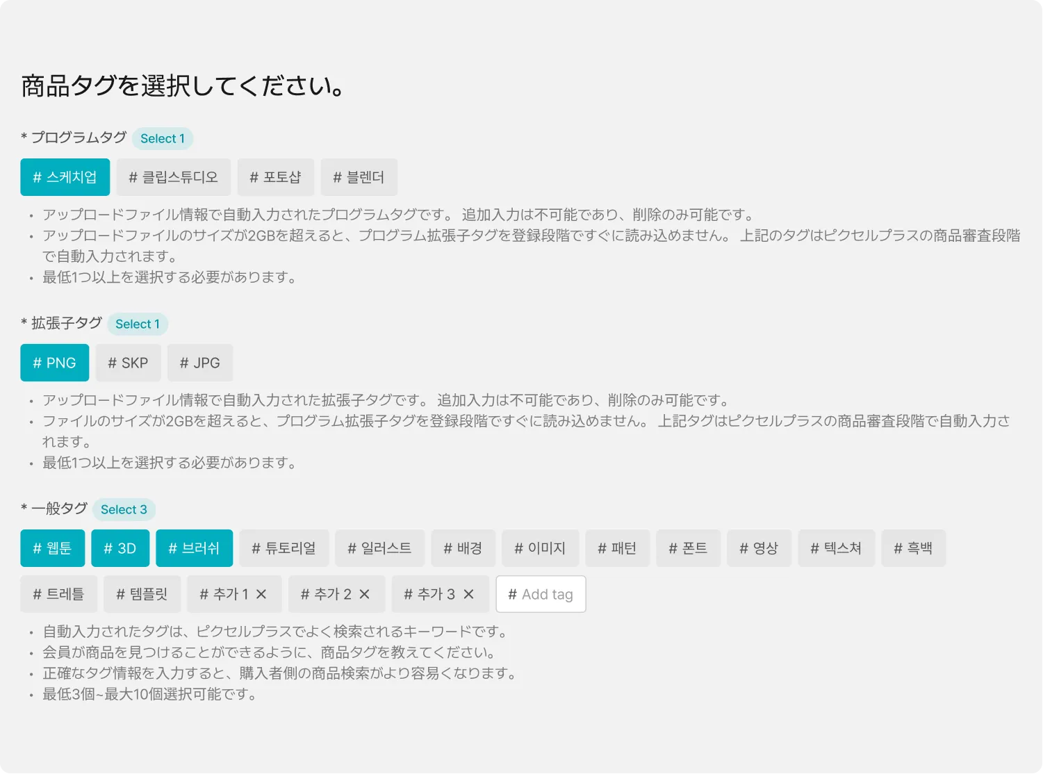 Pixelplusメイン画面で[+商品登録]ボタンを押して商品登録ページに移動して下さい。