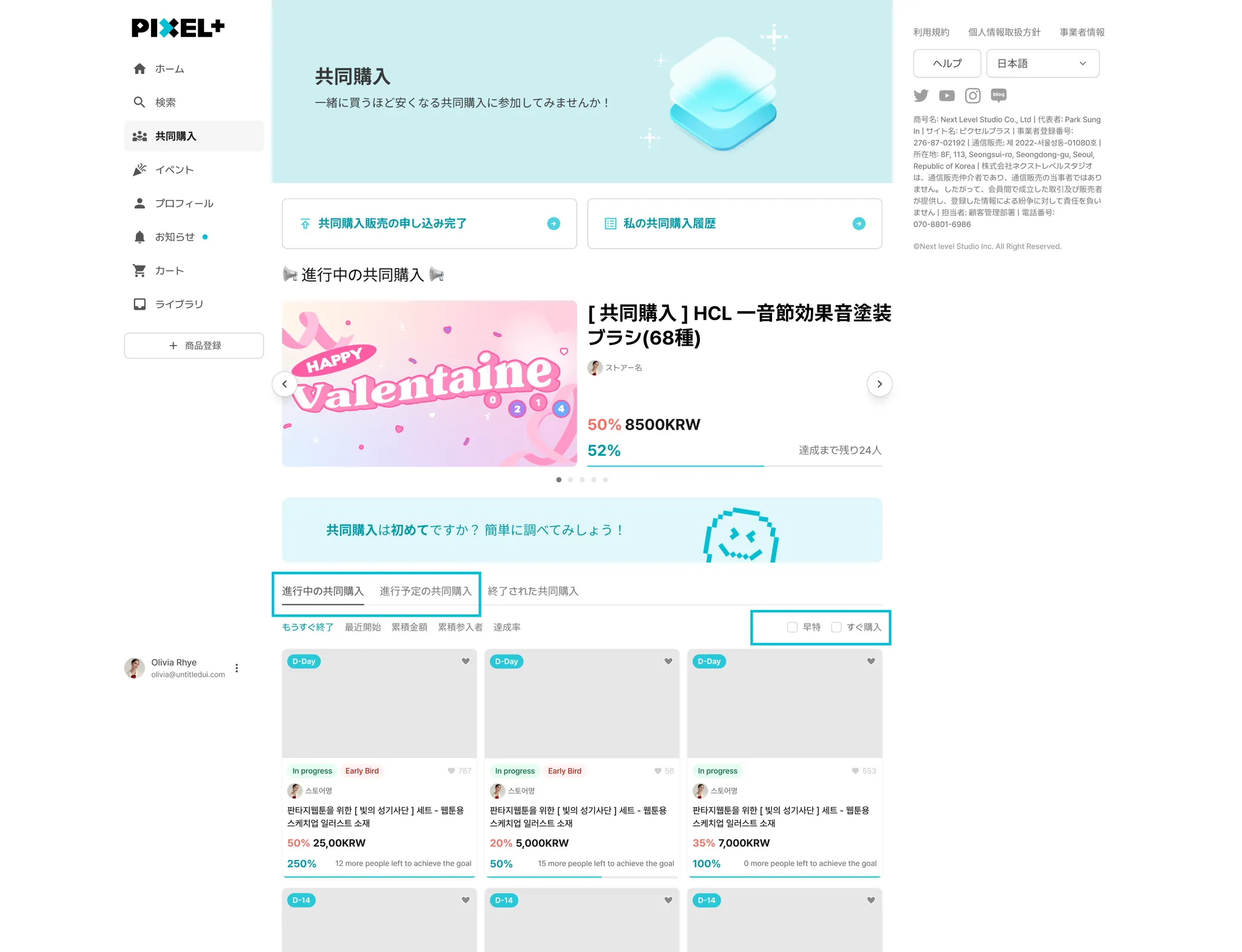 進行中の共同購入/進行予定の共同購入をご確認ください。
