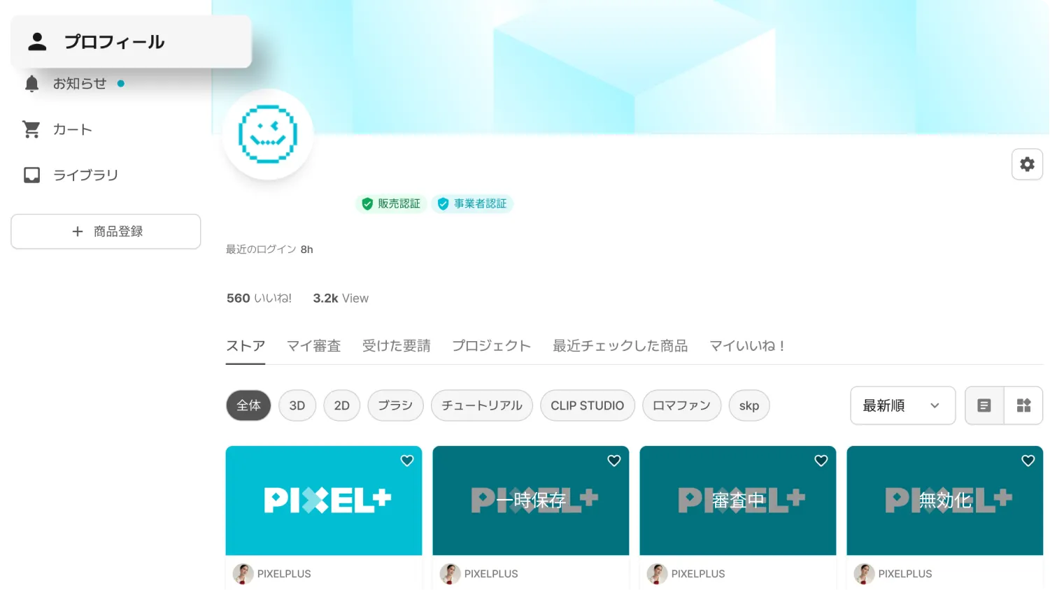 ストアで販売中の商品、審査中の商品、臨時保存した商品、非活性化した商品などを確認してみてくださいね!