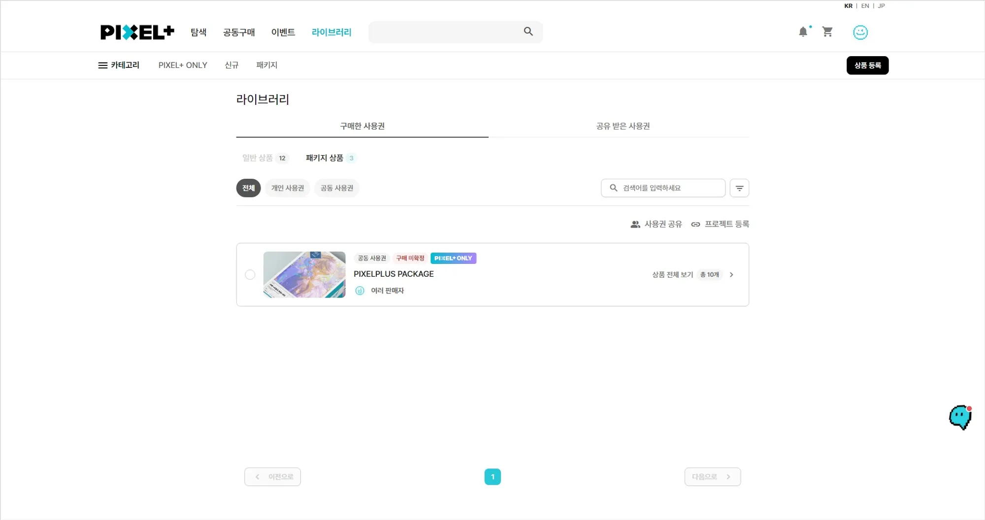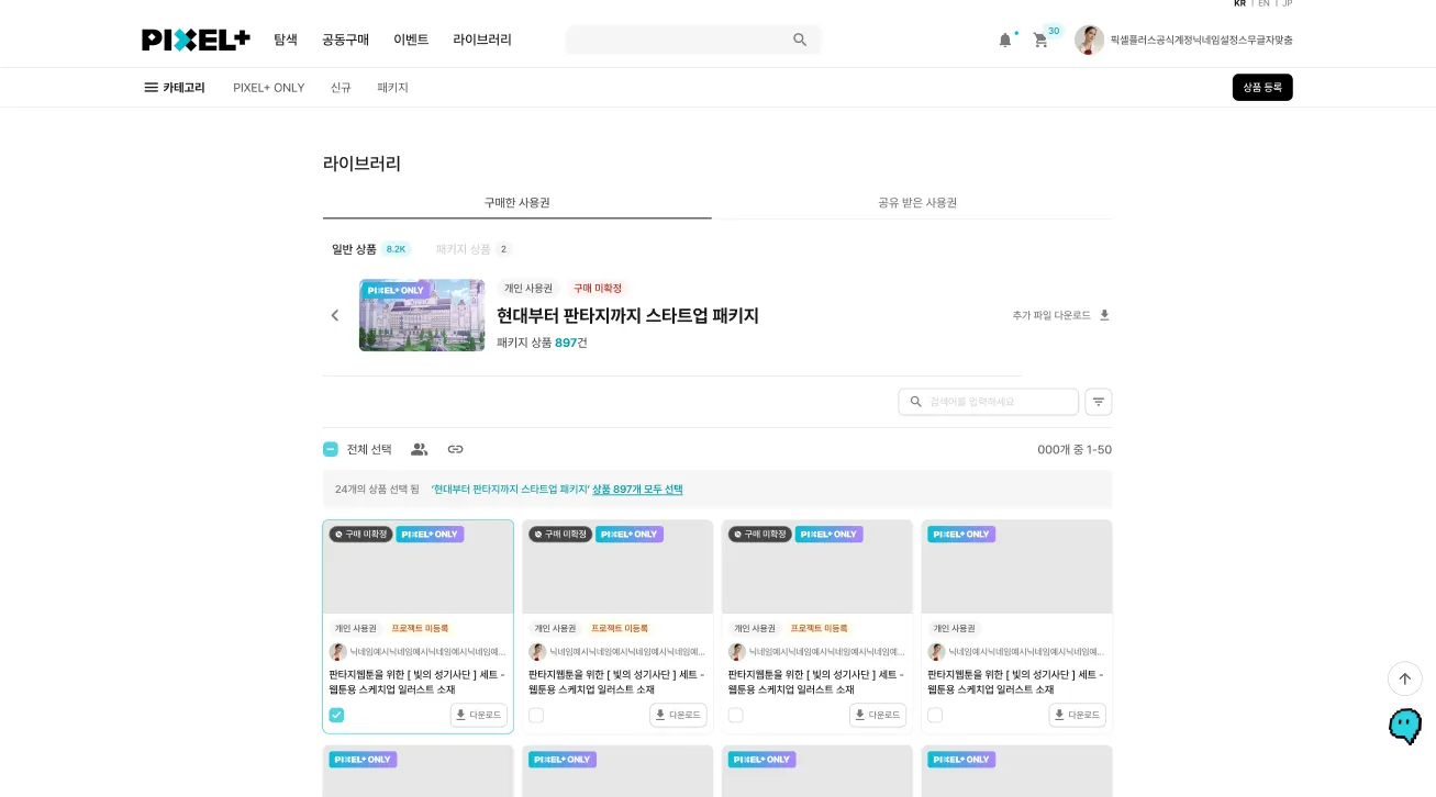 라이브러리 - 구매한 사용권 - 패키지 상품