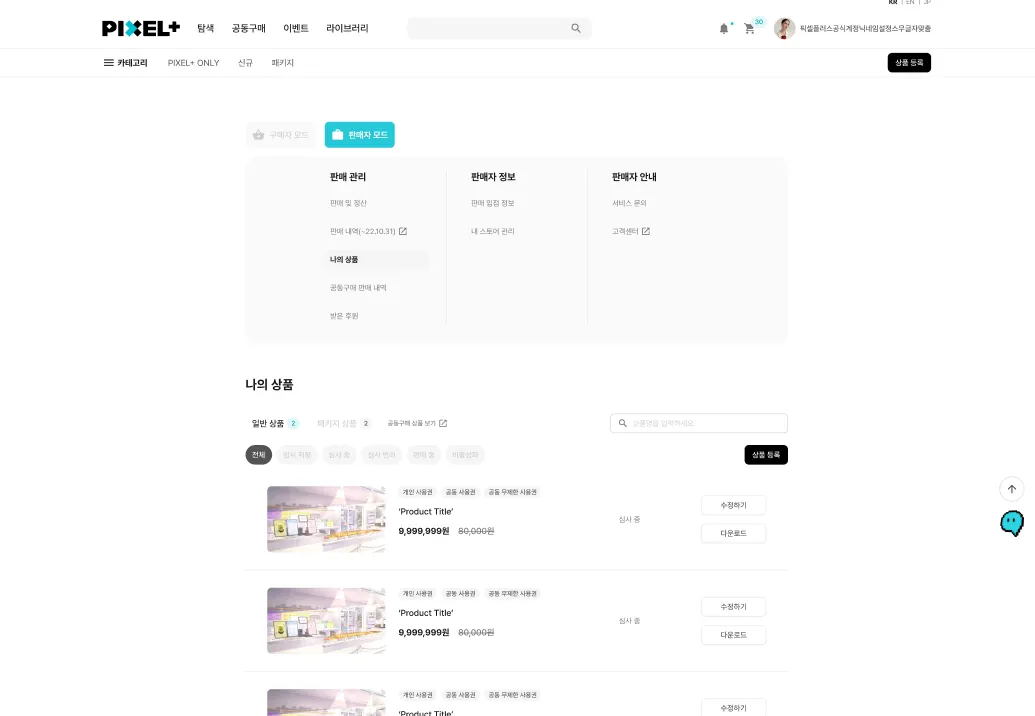 판매가 승인된 패키지 상품은 마이페이지 - 나의 상품에서 일반 상품과 구별하여 확인할 수 있어요.