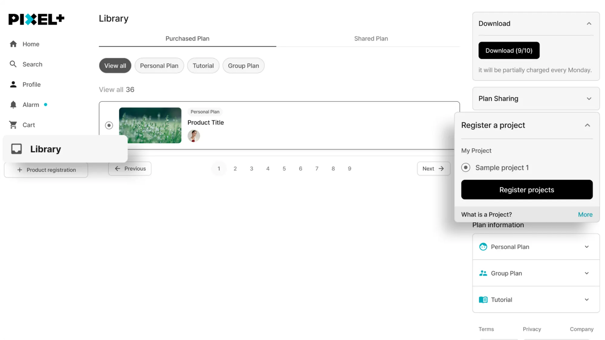[Library] → [Purchased Plan] → [Register a project]