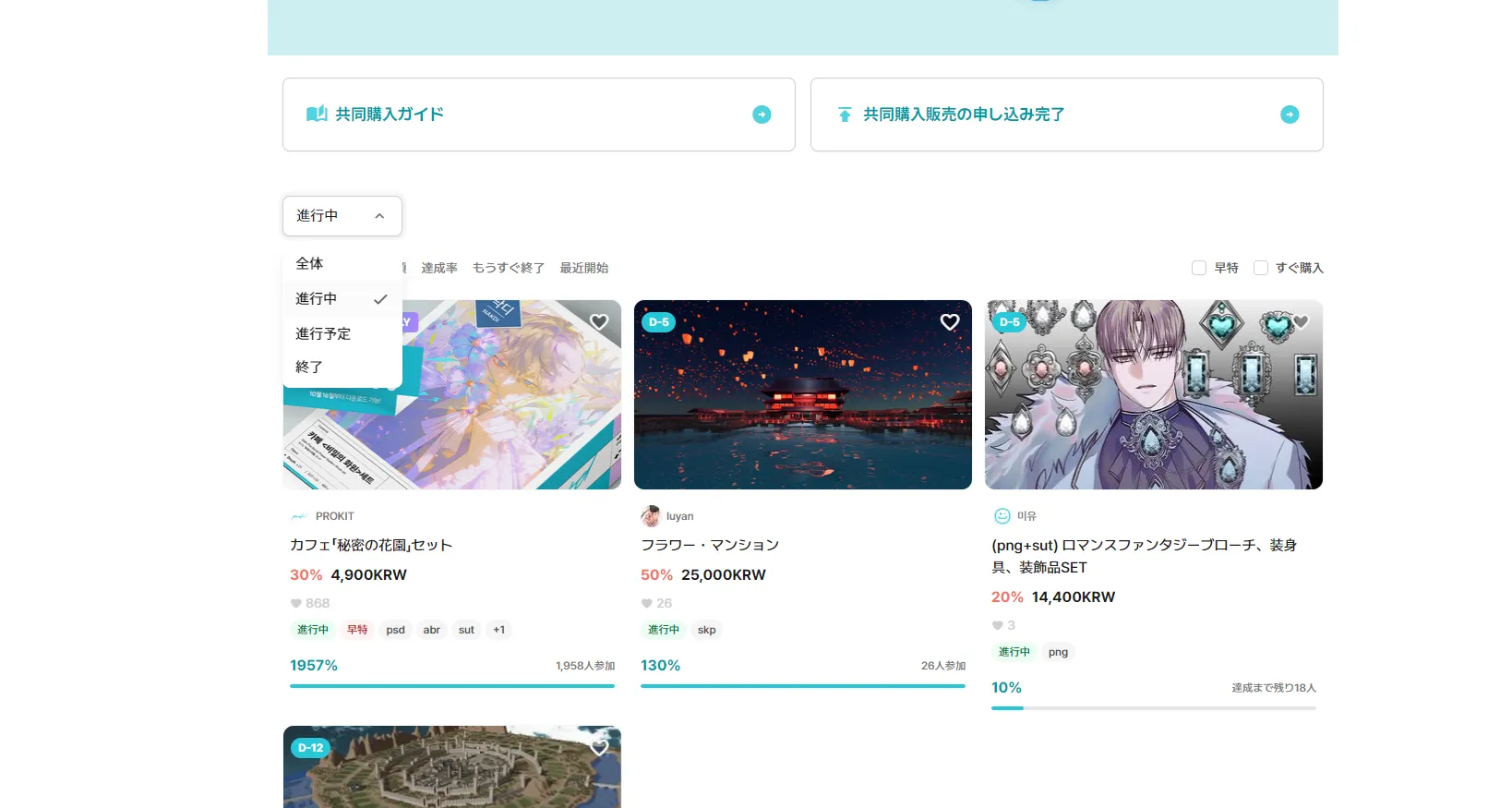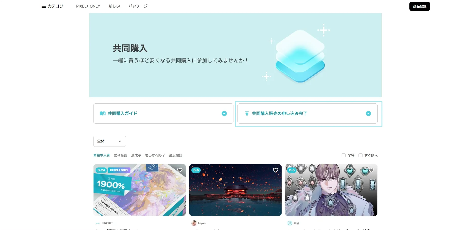 進行中の共同購入/進行予定の共同購入をご確認ください。