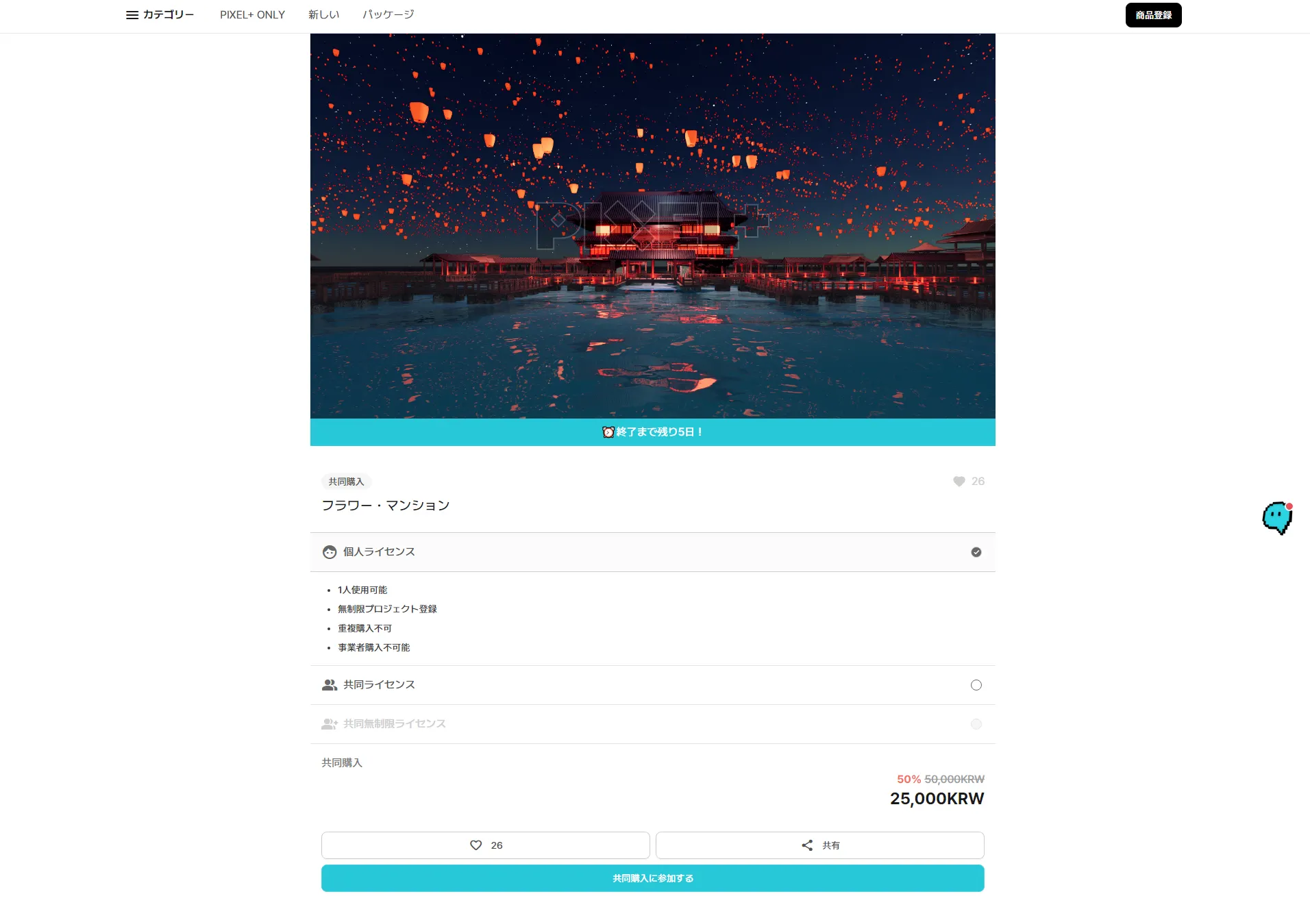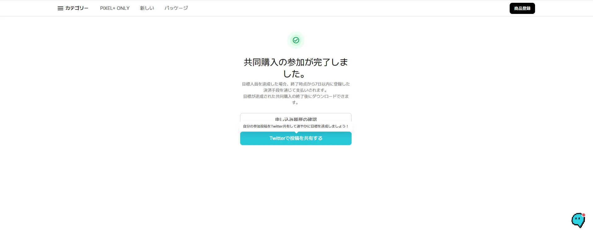 後で決済はピクセルペイで決済可能で、数量達成時7日以内に自動的に決済されます。