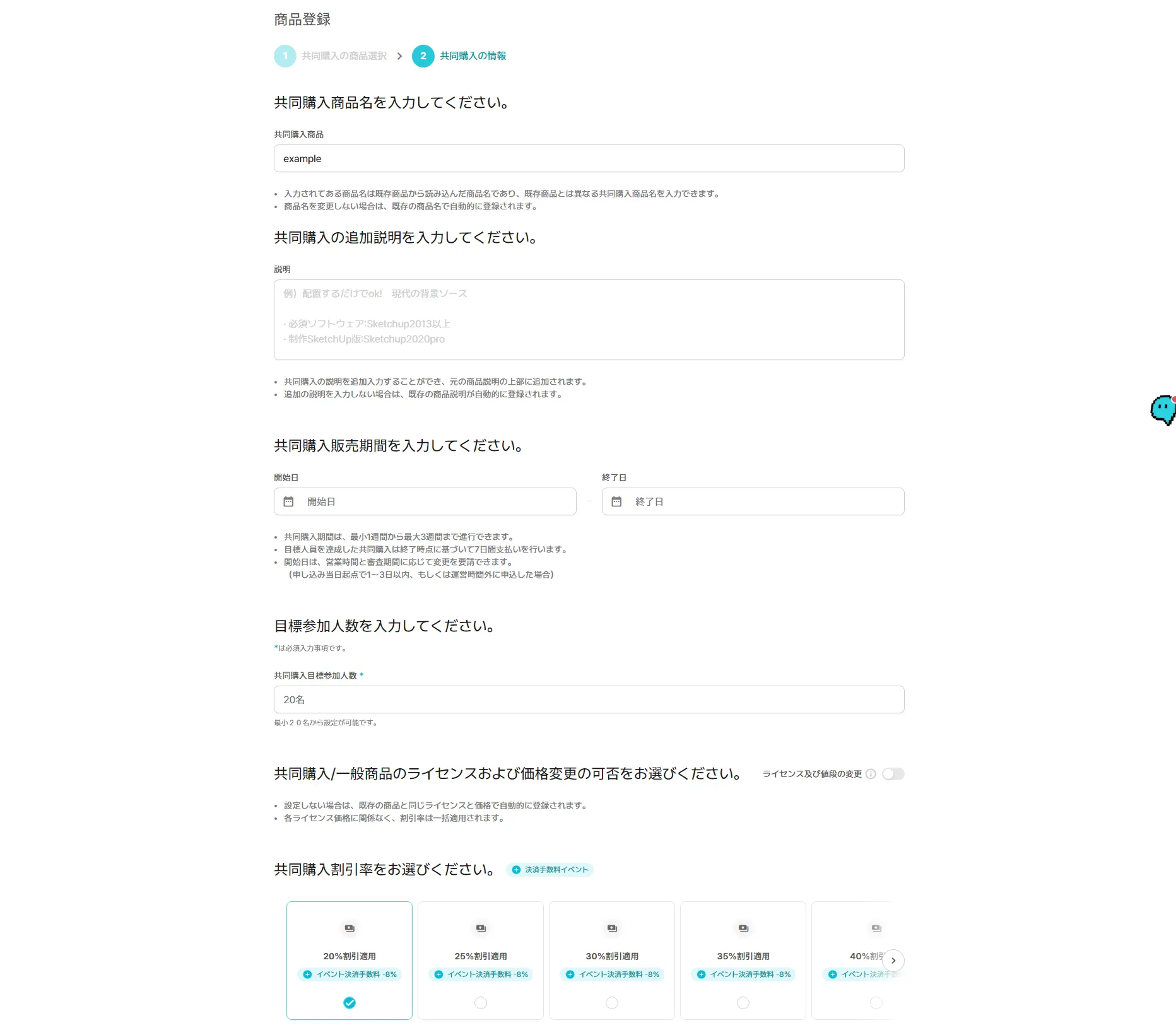共同購入オープン日は、運営時間及び審査期間により変更要請することができます。 (申請当日から1~3日以内、又は運営時間外に申請した場合)