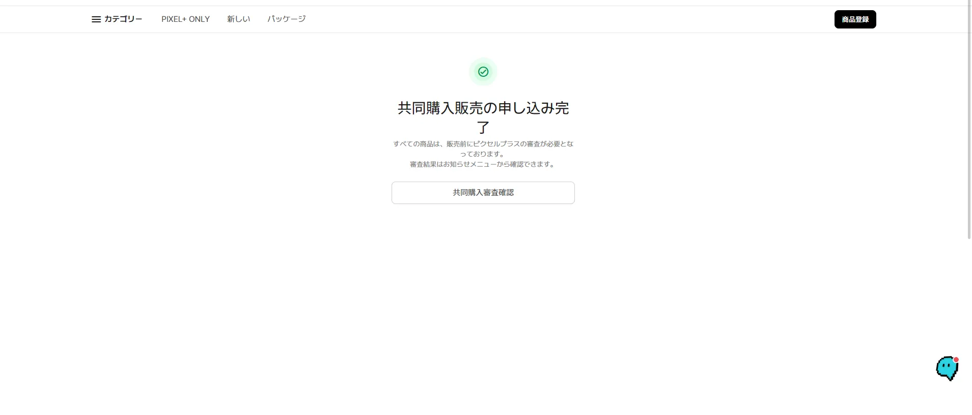 共同購入販売申請ボタンを押すと、共同購入申請が完了します。