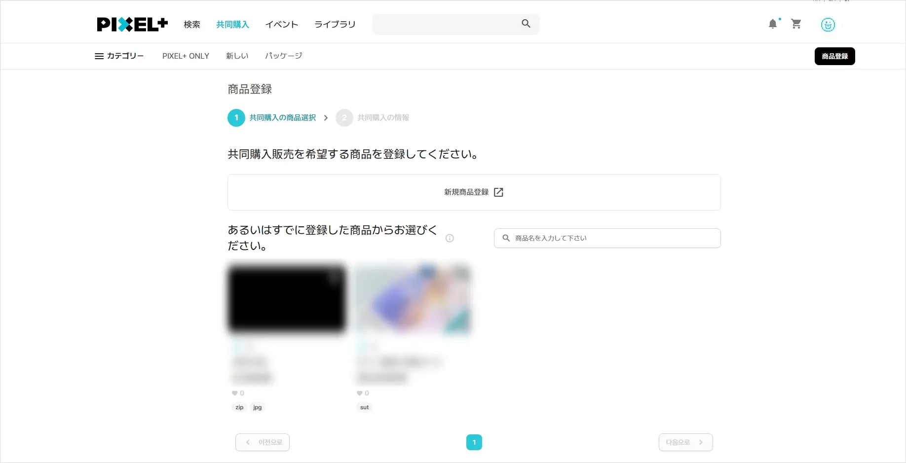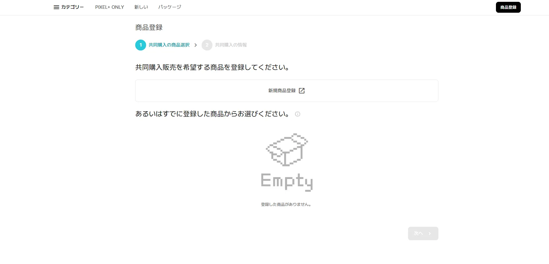 新たに共同購入で販売したい商品がある場合は、[新規商品登録]から商品を登録してください。