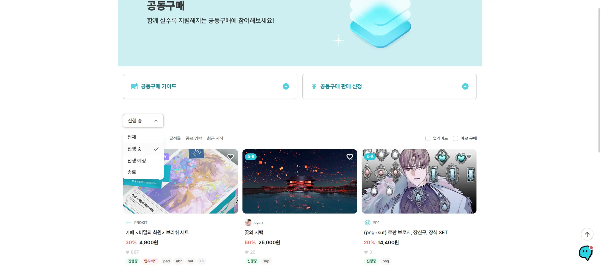 1. 상단 메뉴에서 [공동구매] 페이지로 들어가주세요.