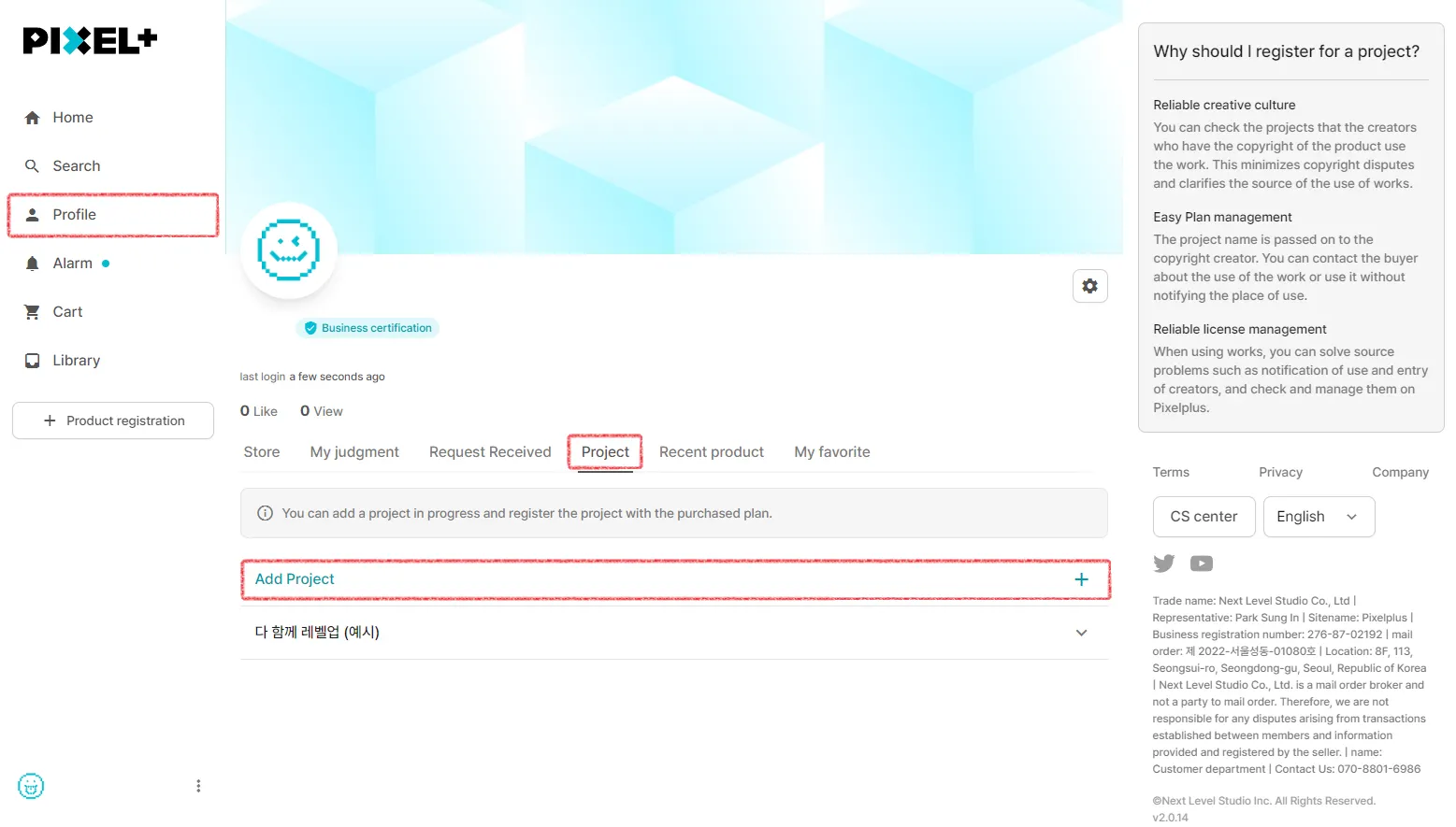 However, if it is used in the case of works that are difficult to disclose in advance, it is recommended that you register the project even after the project name is released, and the plan is valid only when you register the project.