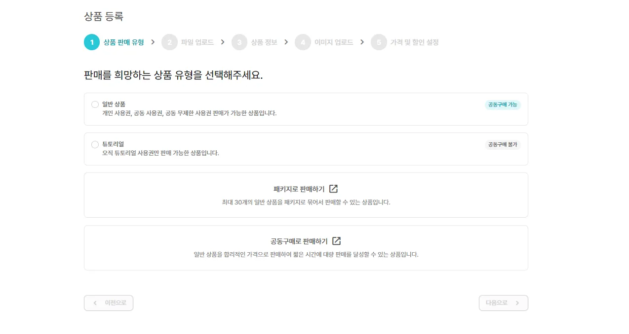 상품 유형 선택하기