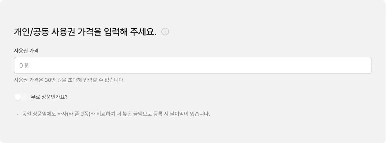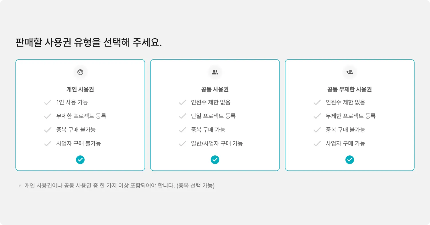판매하고자 하는 사용권 유형을 선택해 주세요.