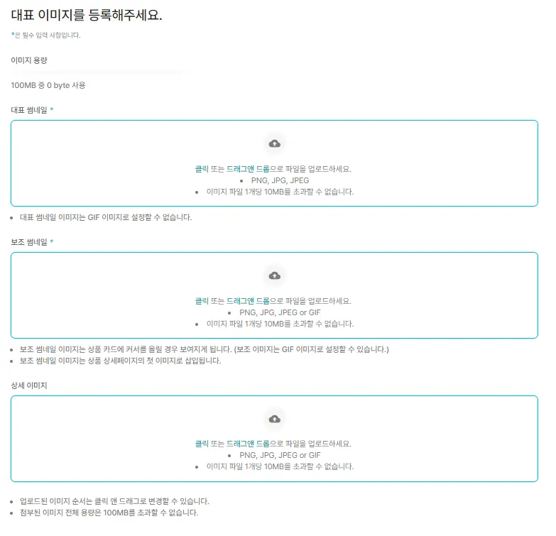 이후 등록되는 이미지는 상품 상세 이미지에 차례로 포함됩니다.