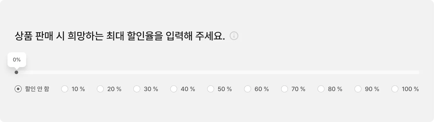 상품 판매 시에 희망하는 최대 할인율을 입력해 주세요.