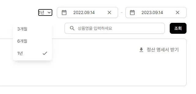 오른쪽 <날짜 선택> 탭에서 정산 기간을 선택할 수 있어요.